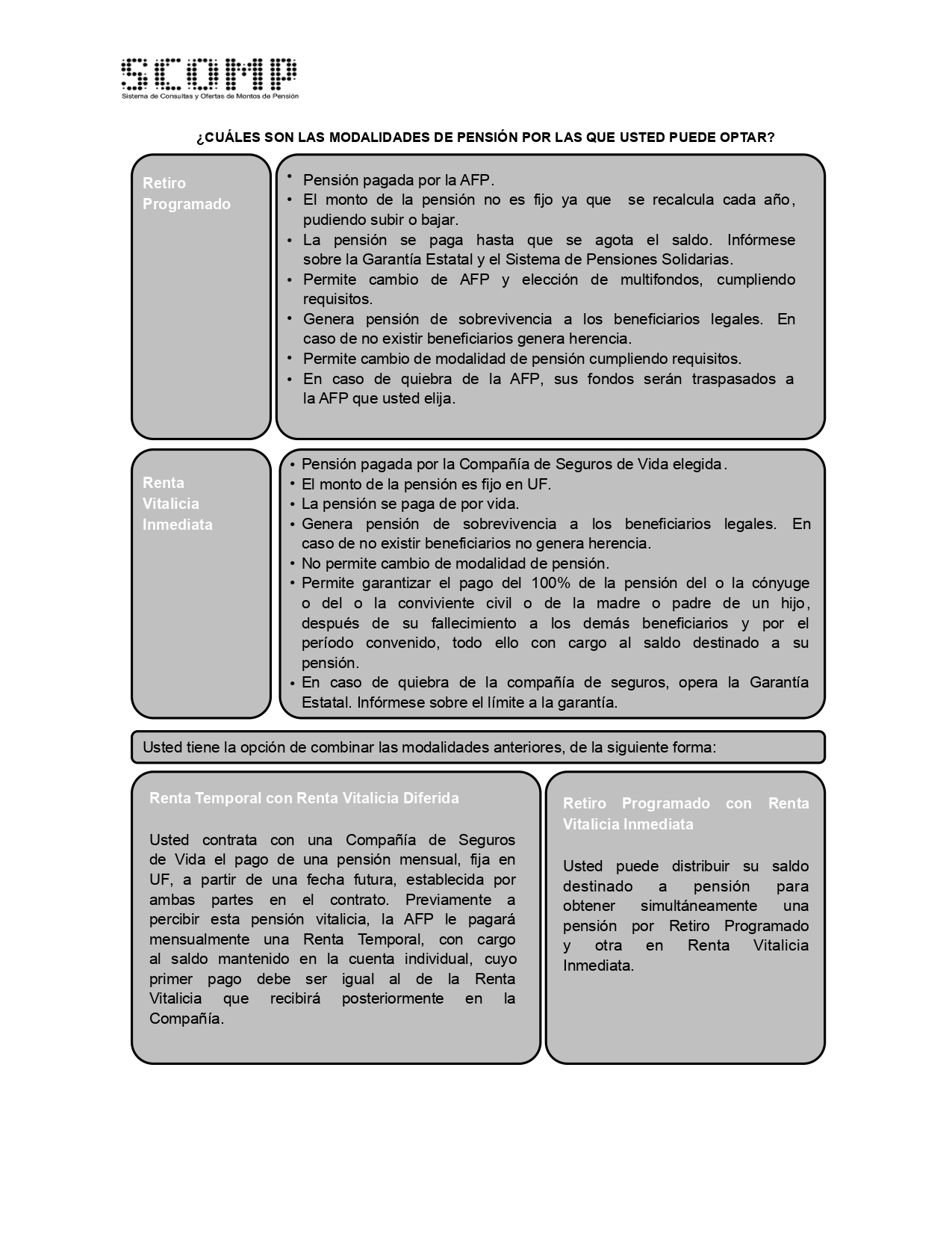 En esta página encontrarás información relevante sobre las distintas Modalidades de Pensión existentes. |
