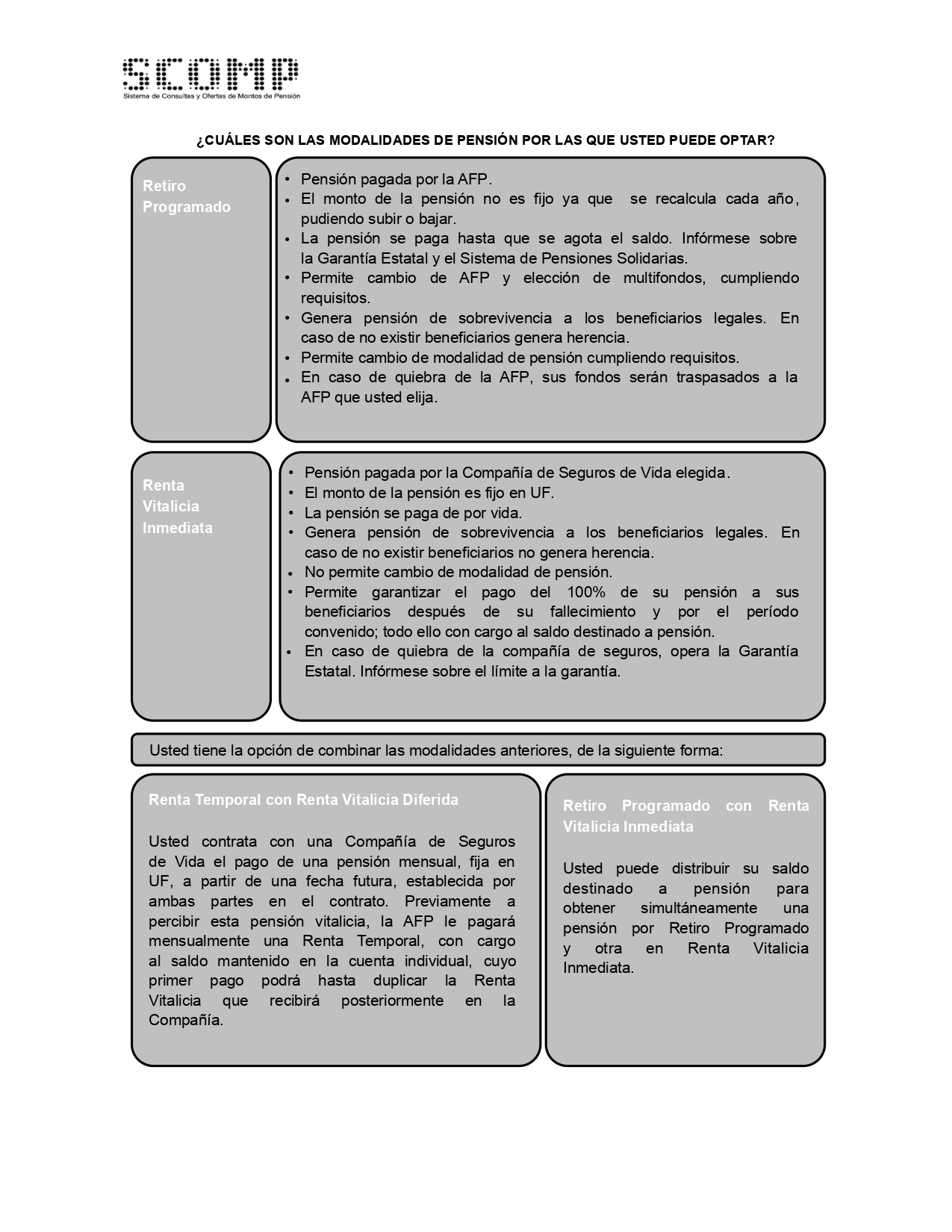 En esta página encontrarás información relevante sobre las distintas Modalidades de Pensión existentes. |